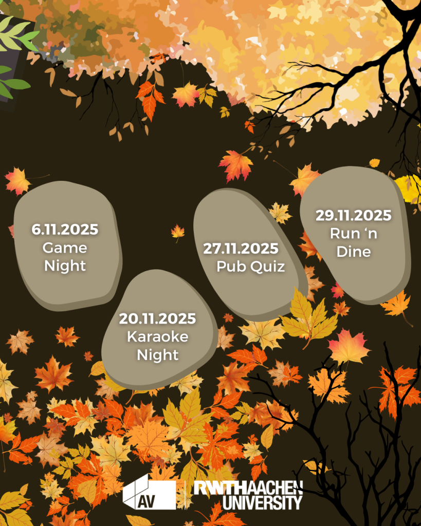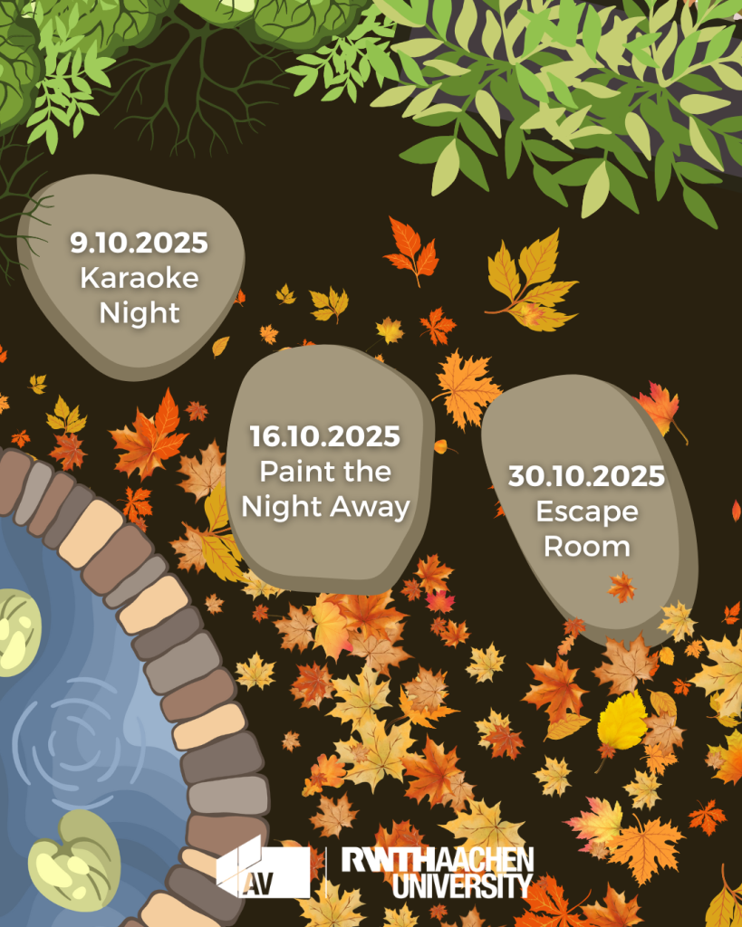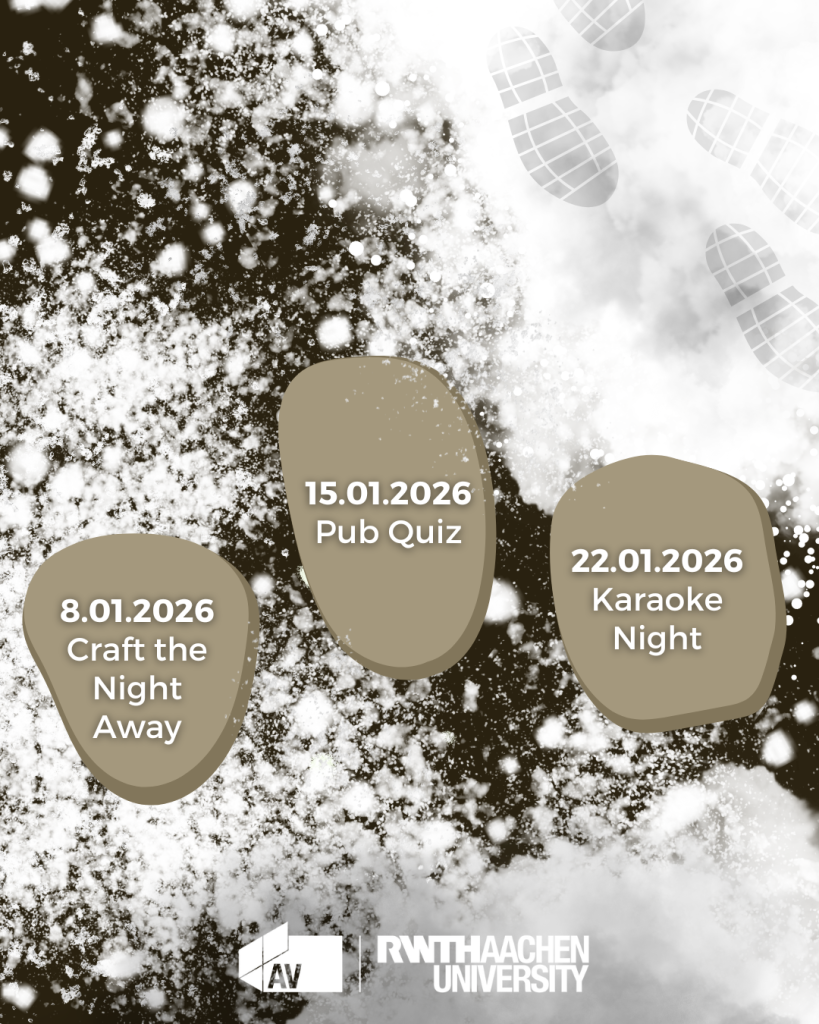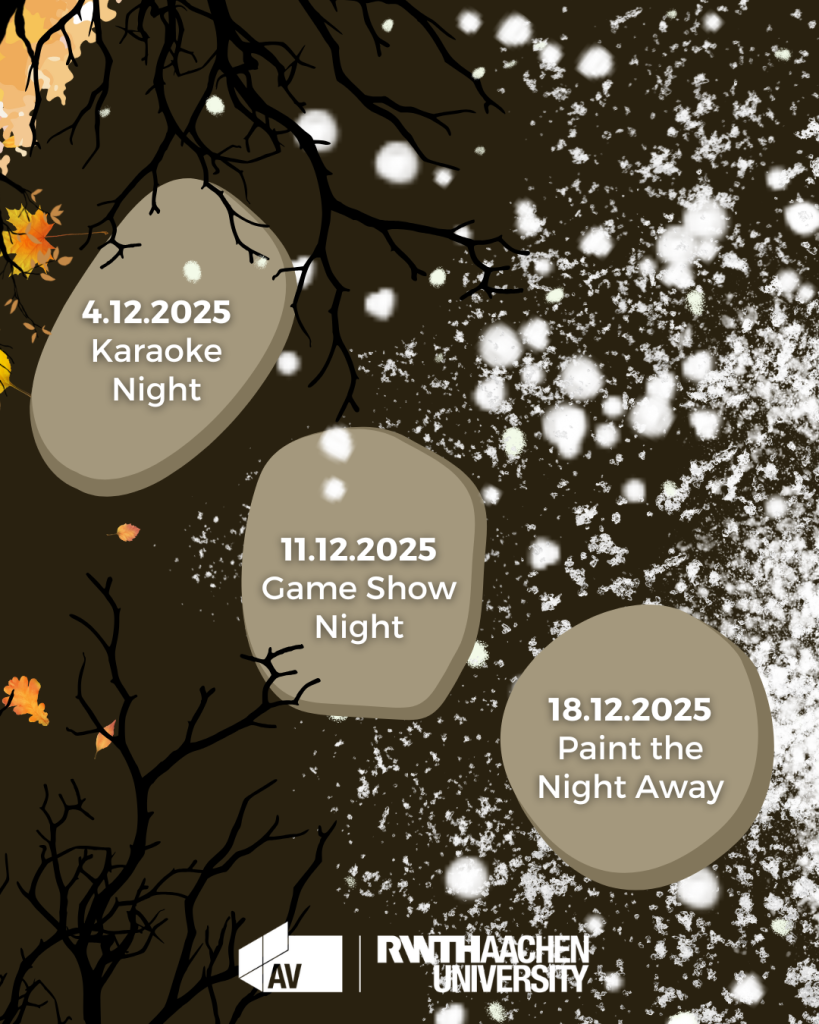 Here is an overview on our upcoming social events. News about the events can be found on our Instagram Page. search Find Events Quick searches Next Weekend Next Week Next Month Online Additional Filters Date Range All Days Weekdays Weekends Location my_location Anywhere Online Only Within 50 miles Within 100 miles Within 250 miles Within 500 miles Please enter your Zip/ Pin to enable distance related search options. Ticket Price Range $ $ Event Type In-Person Consultations Social Event Venue / Location Asta der RWTH Humboldt Haus Humboldt Haus, First Floor Clear All In-Person Consultations Social Event